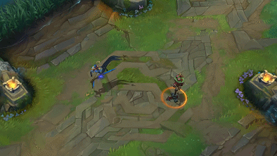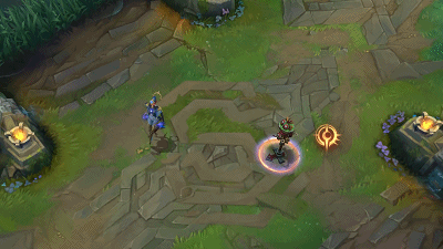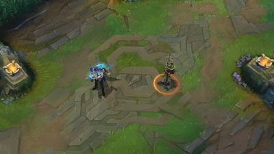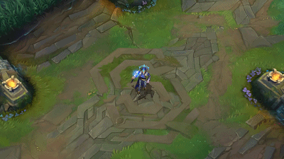 最后就是重头戏大招了,崔斯特开启R-命运之后,敌方英雄头上跳出了类似于克苏鲁之眼的标记,随后再次释放R,地上还会有读秒提示,传送过程中还会有一个特效。