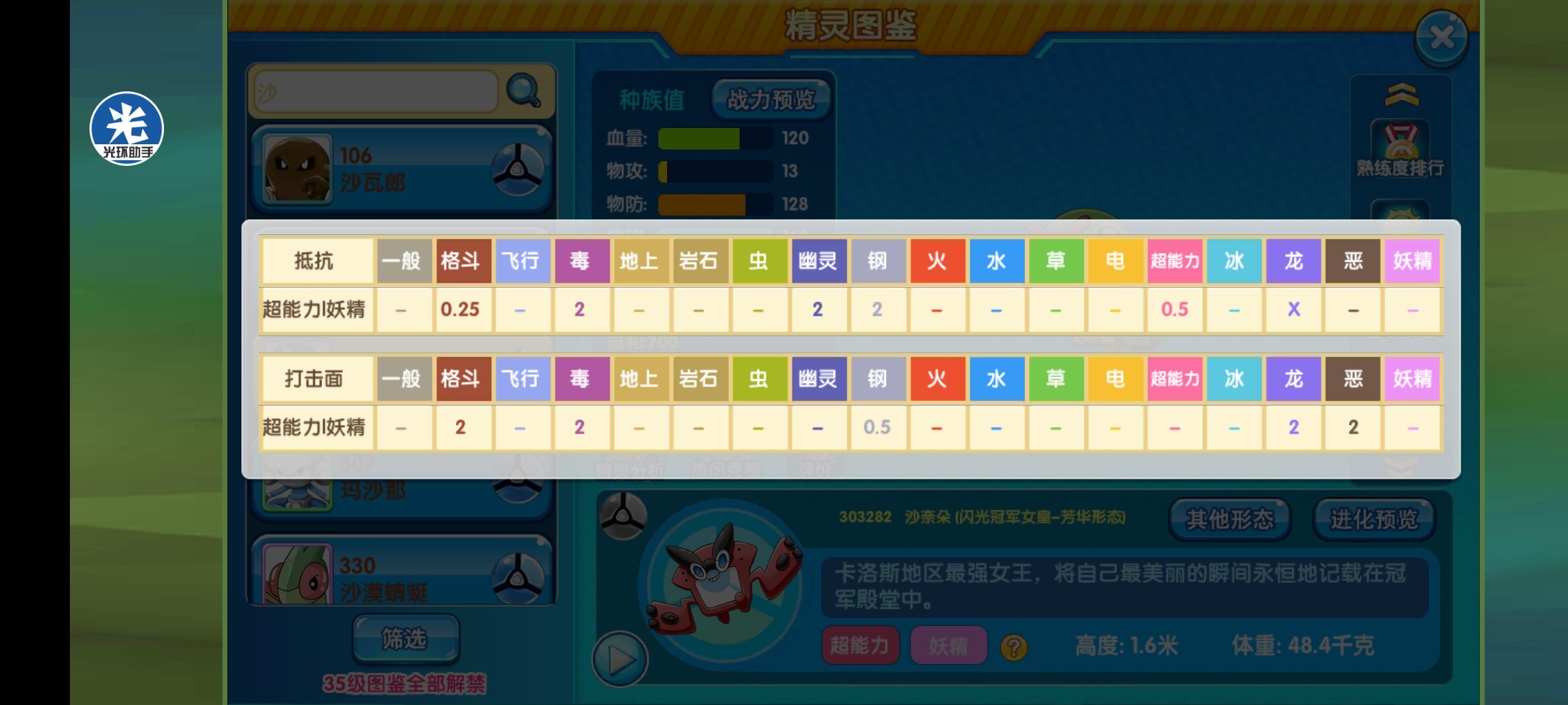超能+妖精的属性比较少见,目前复刻m宠中也就蝶蝶和魔女和它一样了,妖精属性不论抗性还是打击面都不错,而超能属性,在现在的版本环境中也是经过了多次加强,整体弱2倍毒、鬼、钢,2倍抵抗超能系,四倍抵抗格斗系,单从抗性上来说非常一般,不过打击面克制毒、格斗、龙、恶,这四个都比较主流。目前版本来说也是很出色。
