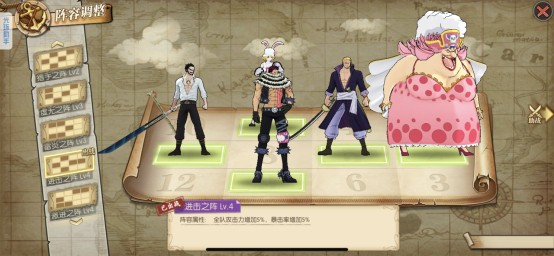 格挡状态:夏洛特玲玲、黑胡子、新世界烟鬼、乔兹、新世界赤犬、新世界弗兰奇、巴尔托洛梅奥闪避状态:卡塔库栗、藤虎、杰克斯、青年雷利、推进城女帝