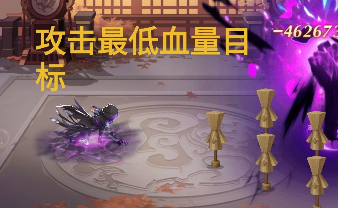 唐银这样做的效果就是限制敌方回血和压低敌方血线,而鬼魅的攻击目标是攻击敌方攻击力最高的目标和血量最低的目标,由此二者配合可以使敌方C位优先掉点(但在速度上唐银的速度要高于鬼魅)