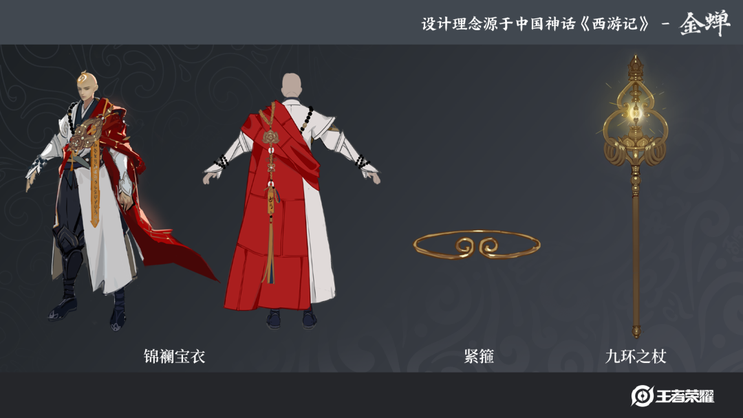 尘封已久的上古神器经过冥冥指引与命中之人重遇,两世的修行与参悟,不变的是普渡众生的愿景,以及对心中信念的无畏追求。为众生着想,以自身之力去解救他人之苦。我们希望这样的金蝉是强大的、是勇敢的,可以帮助困难中的队友渡过难关,也能惩戒敌人,引导他们向善。