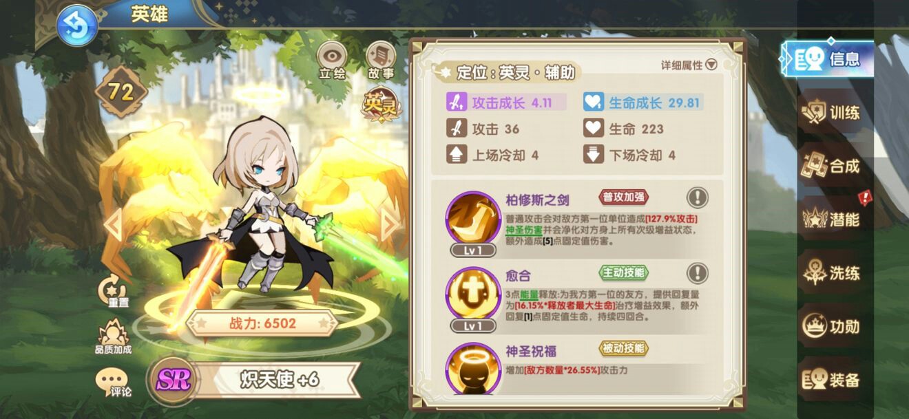 高练度兼顾伤害和坦度,圣盾和真伤让她可以承担大多情况下的承伤和输出任务(注,忏悔是debuff,如果可以清除可以有效提高裁决伤害),类似英雄推荐:推荐没有的话去抽一个,要不自选一个。。。实在不行,针对物伤,法伤图带守卫,或者墓园守卫(不太建议),极高练度自回战士(练度高想怎么玩都可以)