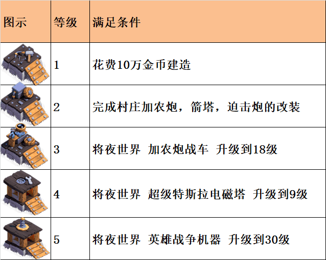 3.夜世界箭塔至少一座升到6级,家乡箭塔至少一座升到10级,才能改装箭塔。