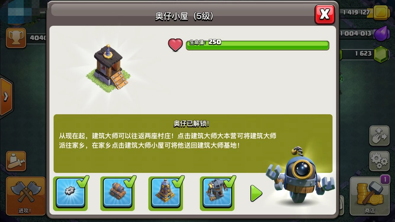 5.夜世界大本营升到9级且星空实验室升到9级,利于建造初级奥仔小屋和升级满级加农炮战车。