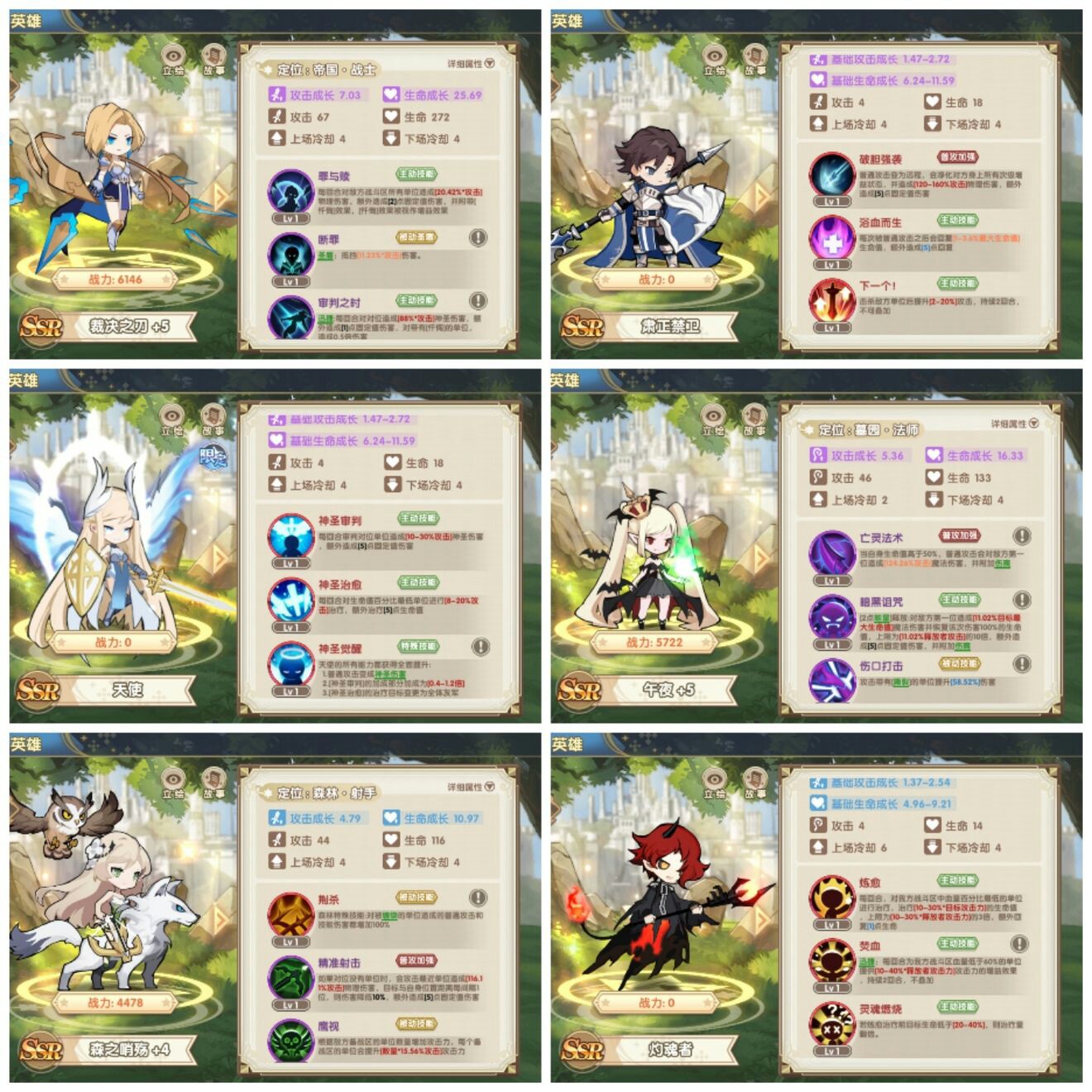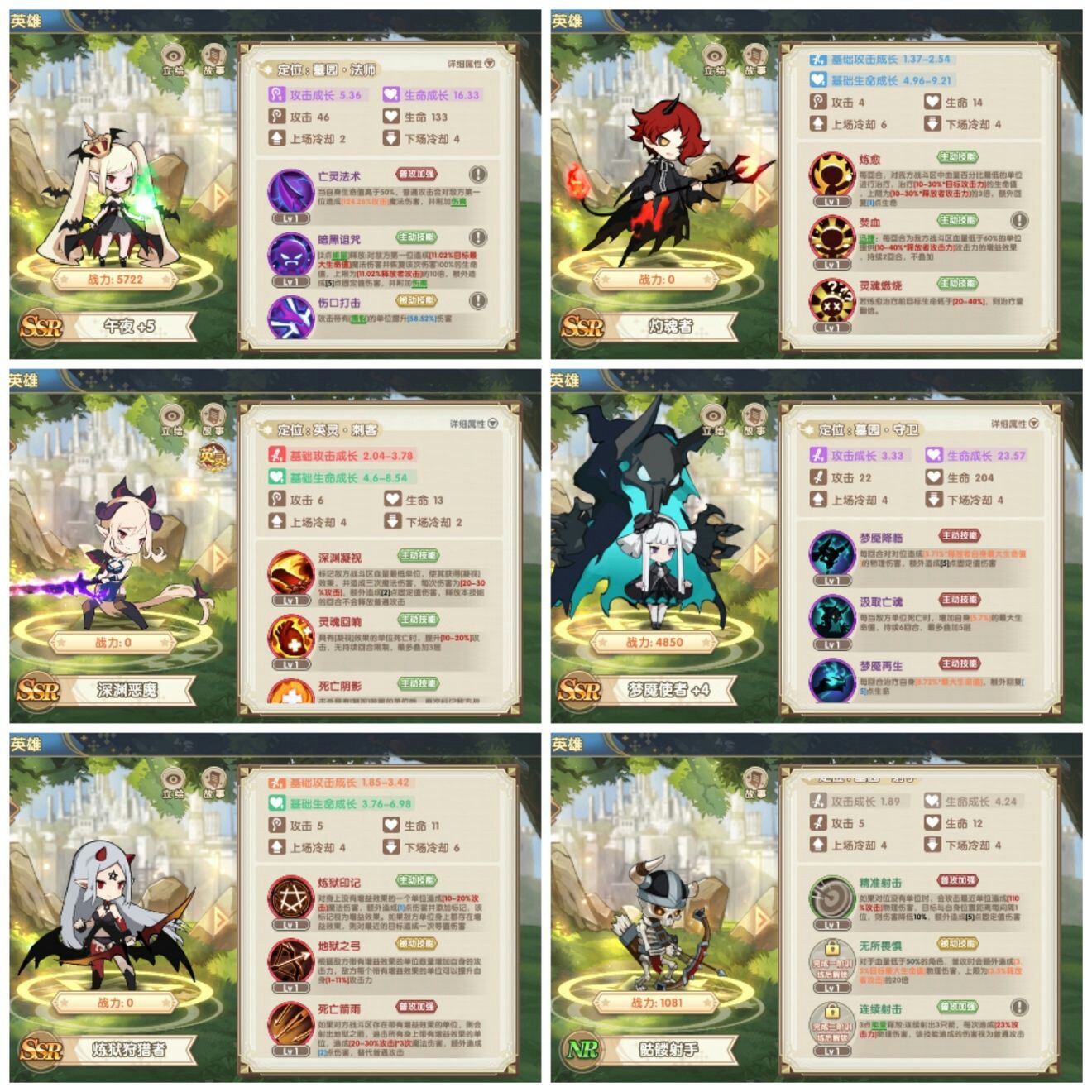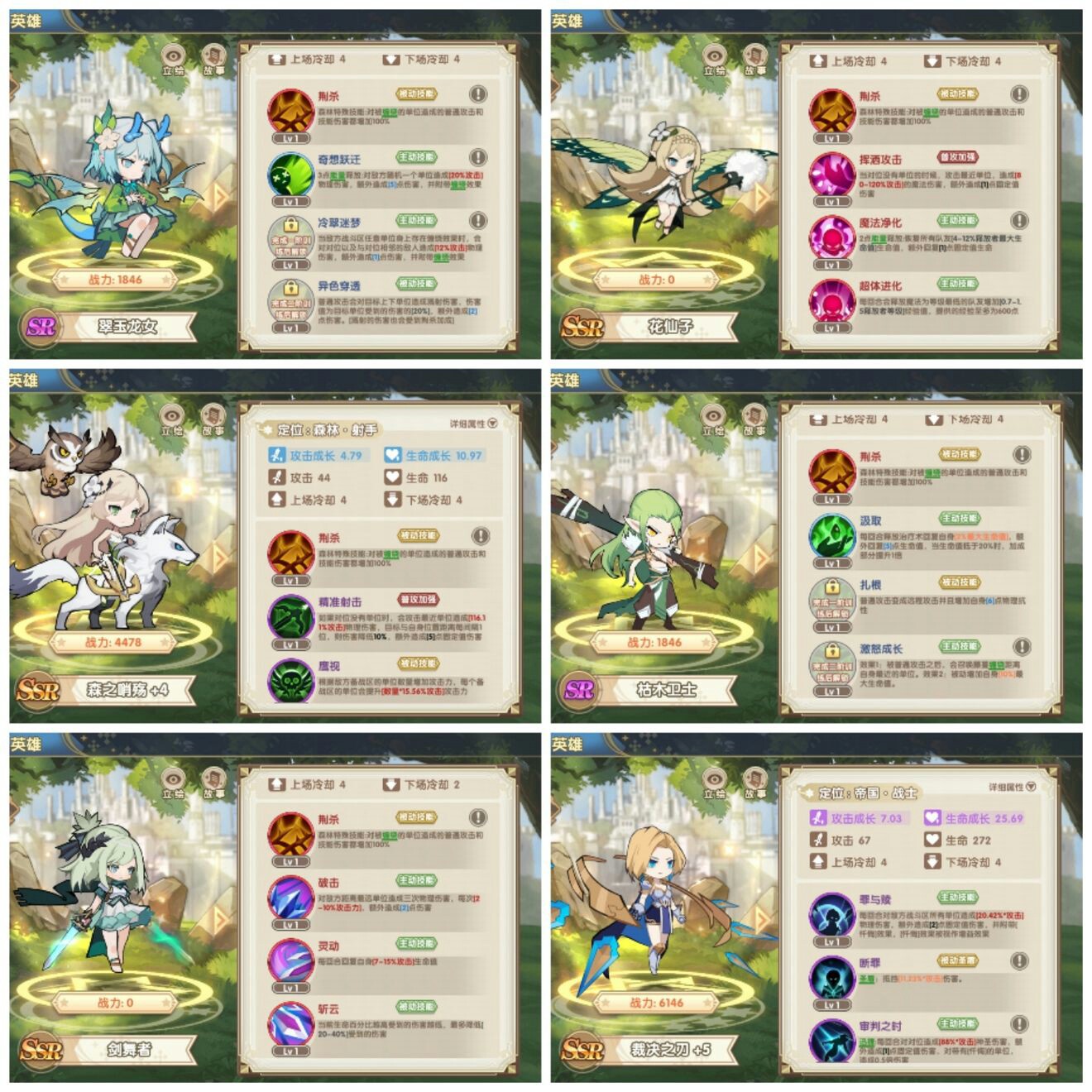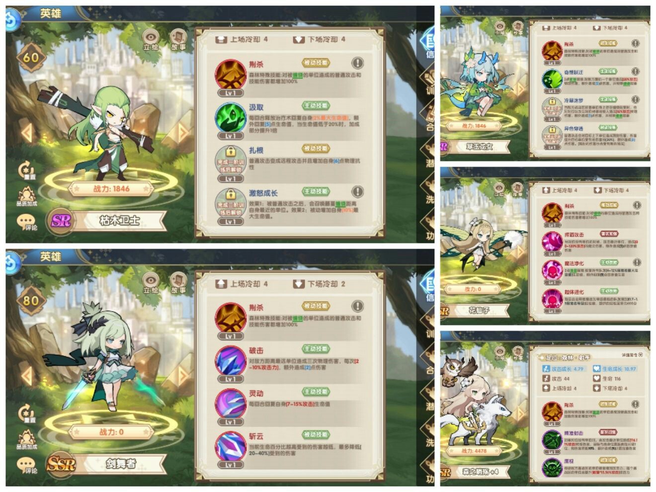 说明:枯木不如裁决能抗,注意提高抗性。剑舞者能打能抗,能对首位输出。龙女枯木,群缠绕。哨殇容易堆怪,但输出高。花仙子超低容错率,但是高等级才是大后期高练度英雄的关键。