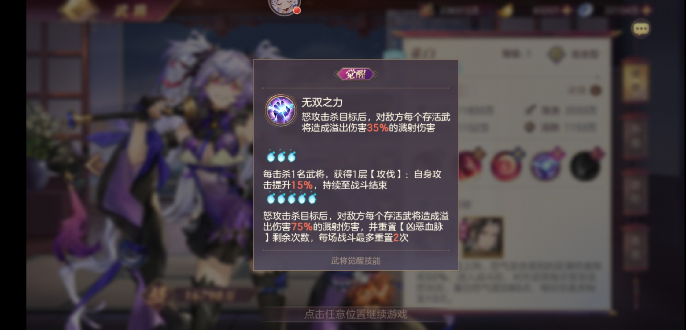 先看羁绊 降低反弹伤害是作为直伤类主C放肆打伤害的保障 参照吕布姜维 第二词条 根据对方出手回复怒气 每回合最高回复800点(算上怒气续航那些增益 每回合多打1-2次怒攻没啥问题)