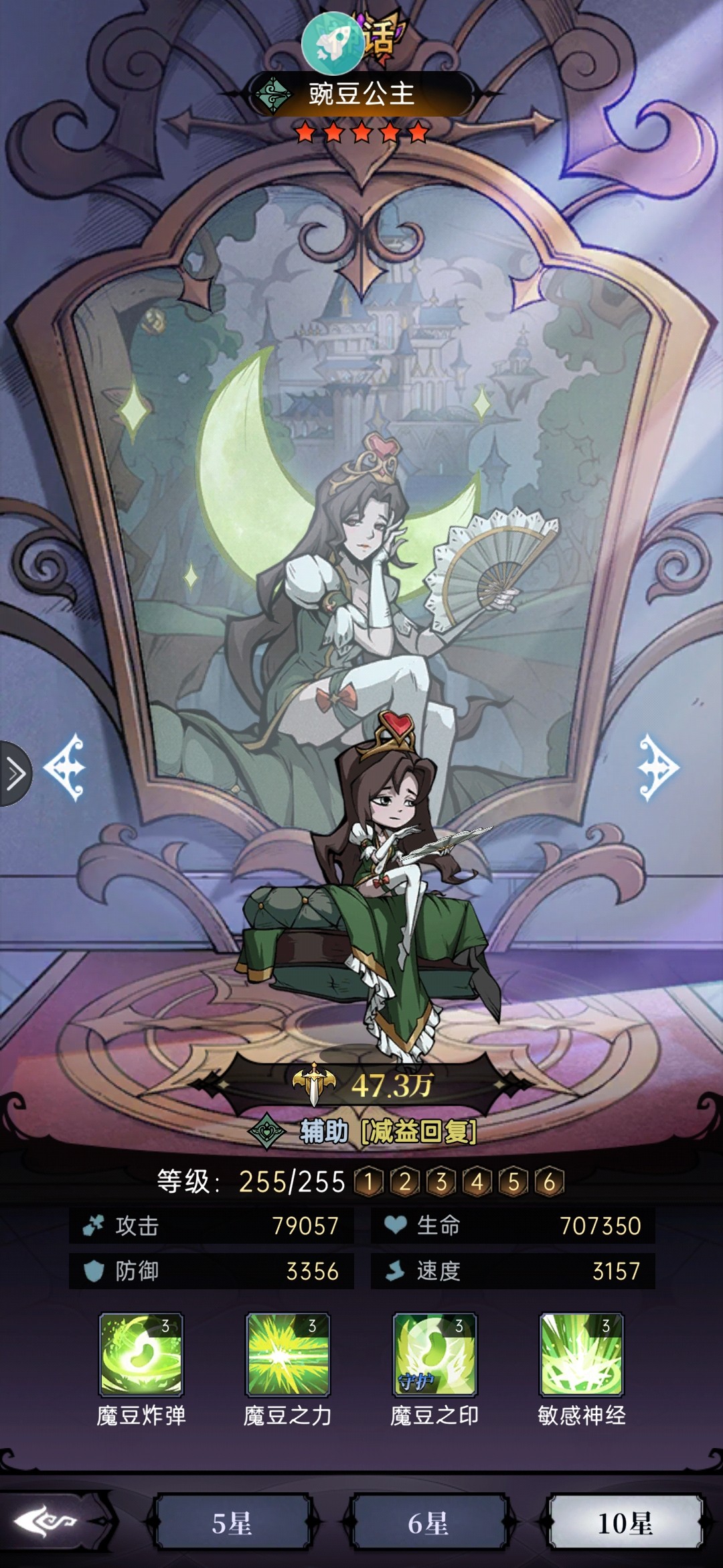 被动:普攻为敌方施加魔豆印记,回合结束恢复魔豆祝福单位生命值。