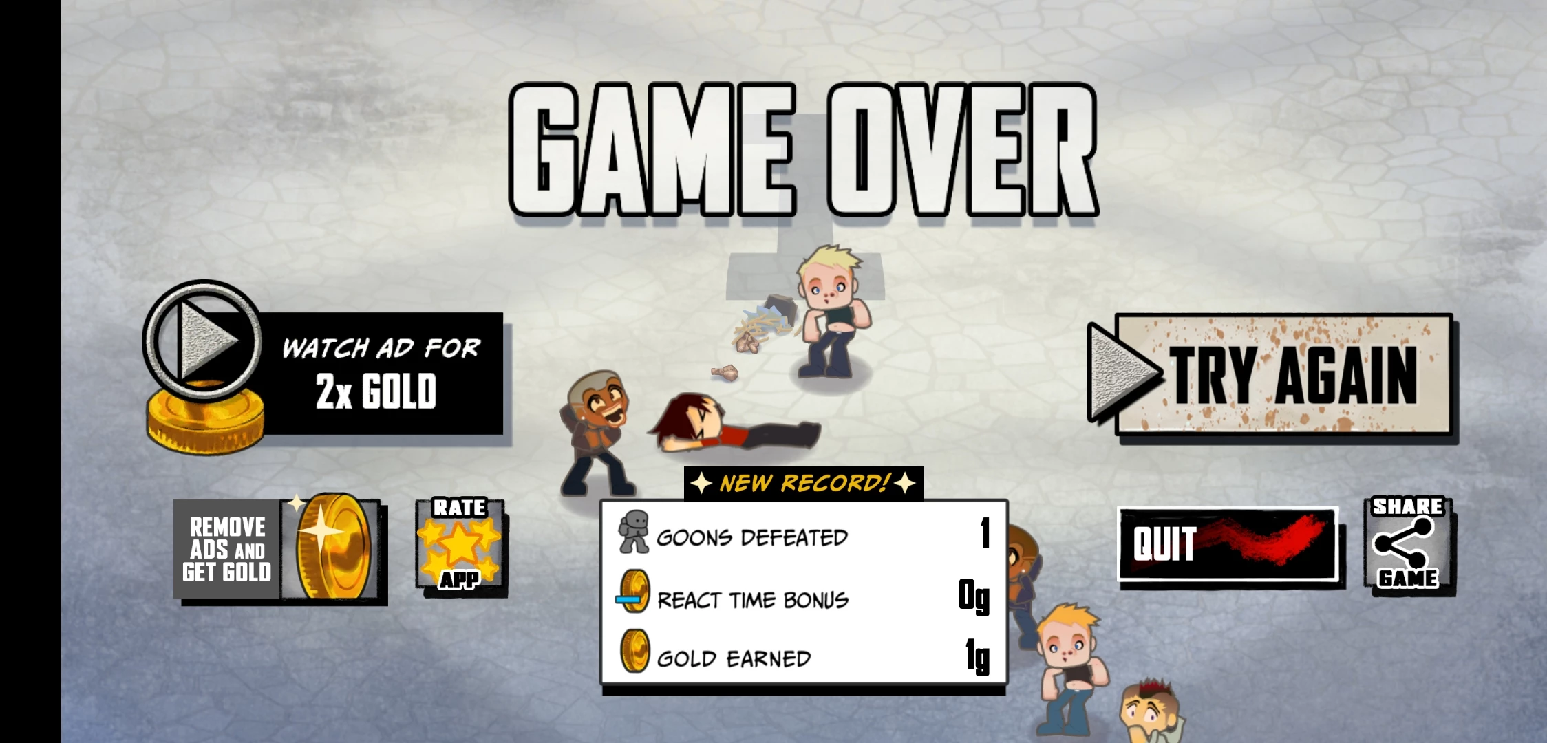 你觉得倒霉蛋只是一个人,无法面对这群恶霸?不不不,你太小看他了,他属于耐力超群的异人,缺少的只是敏捷力而已,他需要你的帮助!当恶霸出现在左侧时,点击左边就可以让倒霉蛋英勇地脚踢恶霸,当坏蛋出现在右侧时,点击右边就可以让倒霉蛋拳打坏蛋,只要反应力够敏捷,倒霉蛋就属于无敌状态。不出错,速度够快,就没有人能够欺负得了倒霉蛋。