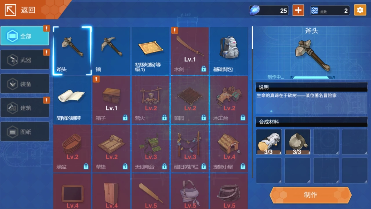 游戏种的制作菜单里头的工具,大部分需要通过升级获得的点数来解锁,但是点数往往是不太够用的,所以如何分配自己的蓝图点数是值得玩家思考的问题之一。而有些特殊道具则需要玩家们通过任务或是探索收集蓝图碎片后才能开启。