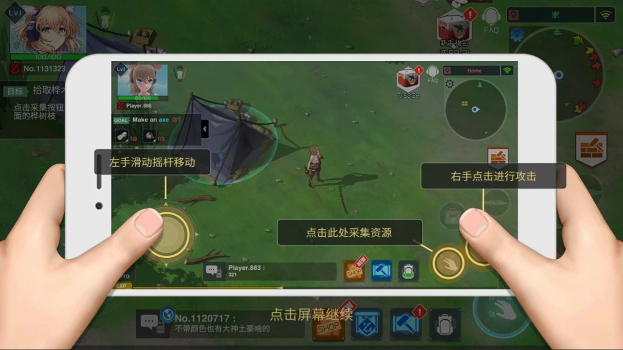 初次进入游戏,会有一段图片教程,我们从中也可以知道游戏采用的是虚拟摇杆搭配上右侧的操作按钮来进行。