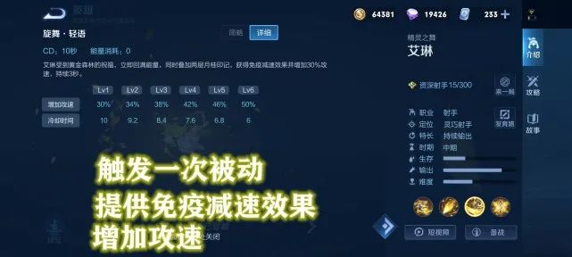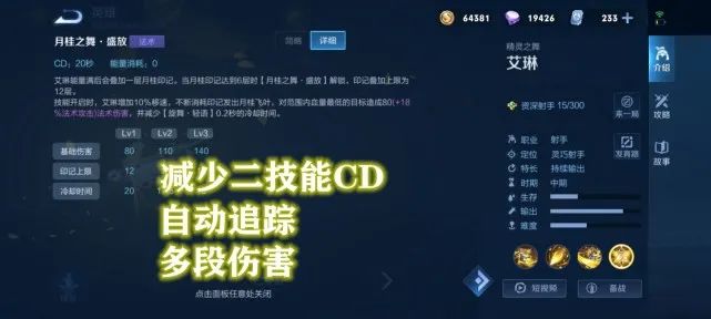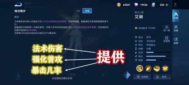 首先是艾琳的被动,她也是让艾琳成为当下热门射手的核心原因。高频率的位移让她可以在团战当中频繁地更改自身站位,从而进行更加有效的输出,而艾琳每造成100点的法术攻击,可以转换为1%的暴击率,也可以直接弥补纯法装无暴击的不足之处。