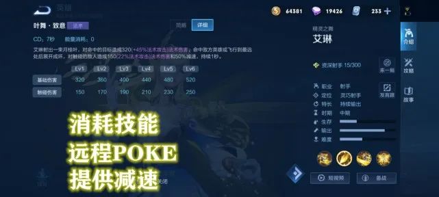 艾琳的一技能主要是一个消耗性的技能,并且手还是蛮长的。当我们命中对方英雄后或者是技能已经到达最远处,就可以对触碰到的敌人造成减速以及法伤的效果,在这里也告诉大家一个小技巧:艾琳的一技能,其实是可以触发许多装备的效果的,在前期可以根据对方阵容很好的进行搭配,这样我们的一技能就可以起到非常不错的消耗,造成很可观的伤害。