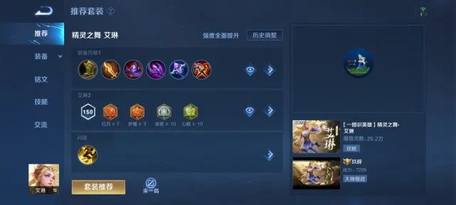 等你选择使用艾琳进行上分的时候,其实我个人是蛮推荐双排的,因为艾琳这一位英雄非常吃辅助。如果友军的辅助没有起到保护的作用,或者是意见与艾琳不符合的情况下,很容易导致自身直接丧命。所以在这里我比较推荐的辅助是:张飞、牛魔、瑶瑶,这几位辅助都具有非常突出的保护特点,他们可以让艾琳快速的过渡到后期。还有就是许多小伙伴玩艾琳喜欢带明世隐的情况,他想用明世隐所提供的输出加成弥补艾琳爆发不足的情况,原理上是没错的。但是艾琳并不等同于其他没有位移的呆射,反之,她是射手当中机动性最高的英雄之一,所以很容易在明世隐牵线的情况下断开,非常不推荐带小明。其他保护能力强的辅助,都是可以的。