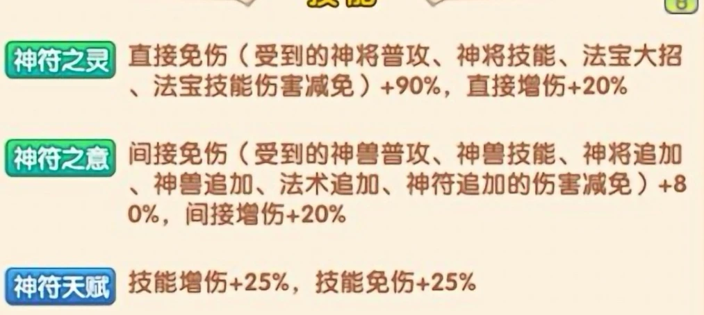 神符的共有技能分别是【神符之灵】【神符之意】【神符天赋】三方面,主要效果是为了提升佩戴神将的生存与伤害能力,让神将以更厚实的坦度和更犀利的攻击取得胜利。