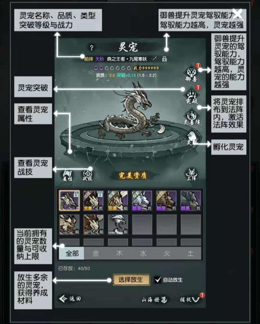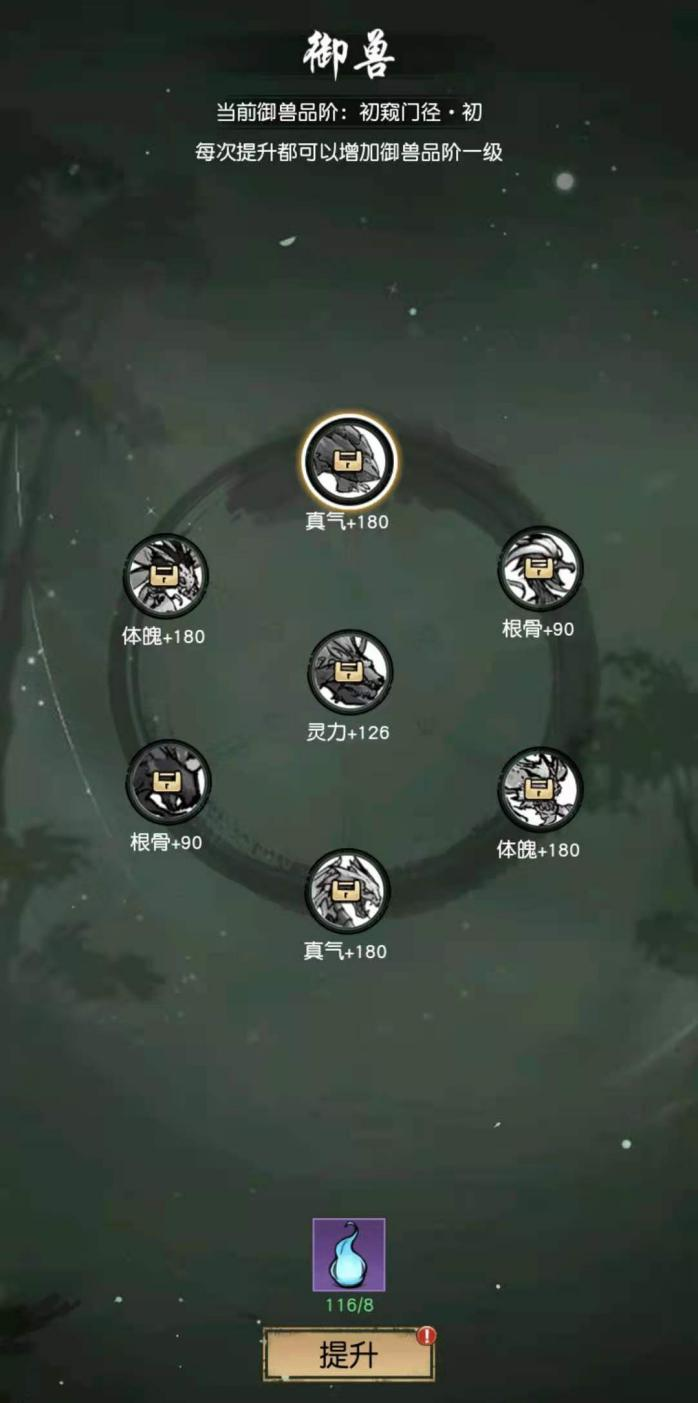 在通过主线7-16后可以解锁御兽。御兽可以提升灵宠的面板属性,但受限于灵魄量和玩家境界。灵魄可以通过放生灵宠、商店和日常任务获取。