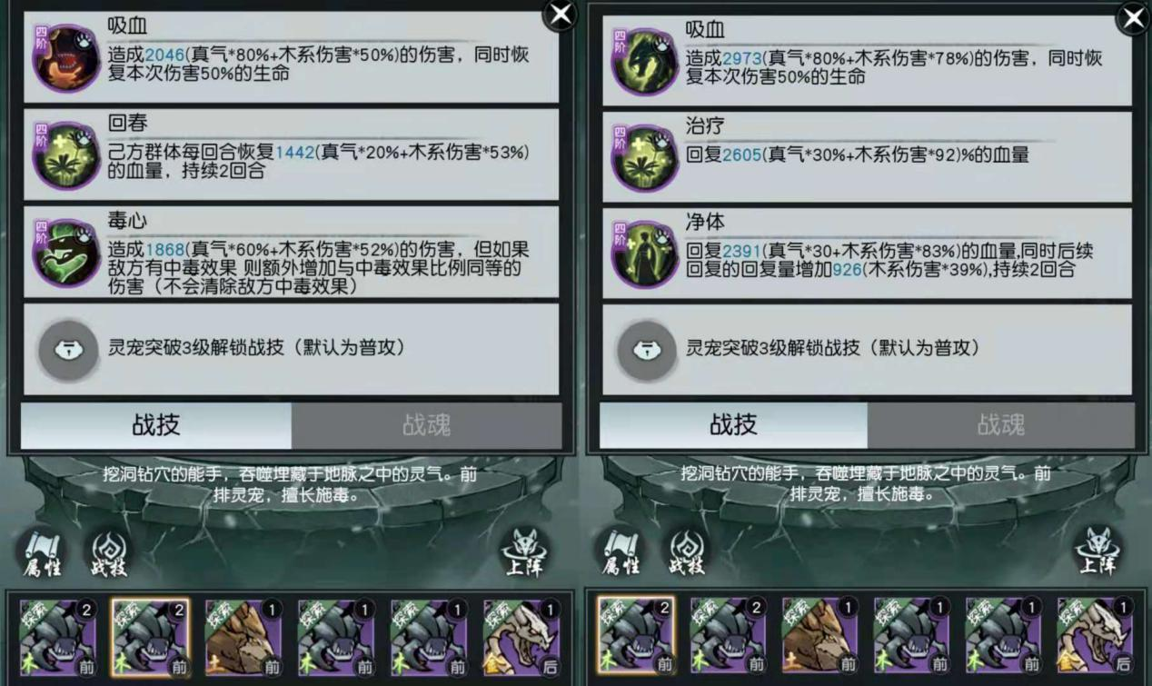 要注意的是,天阶以上灵宠的后三个技能是灵宠突破后随机获取的,但不管怎么随机都只会是辅佐主技能的同属性技能,组合搭配都还是很合理的。