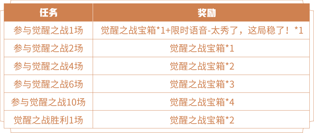 *具体觉醒之战内容请参考觉醒之战开启公告