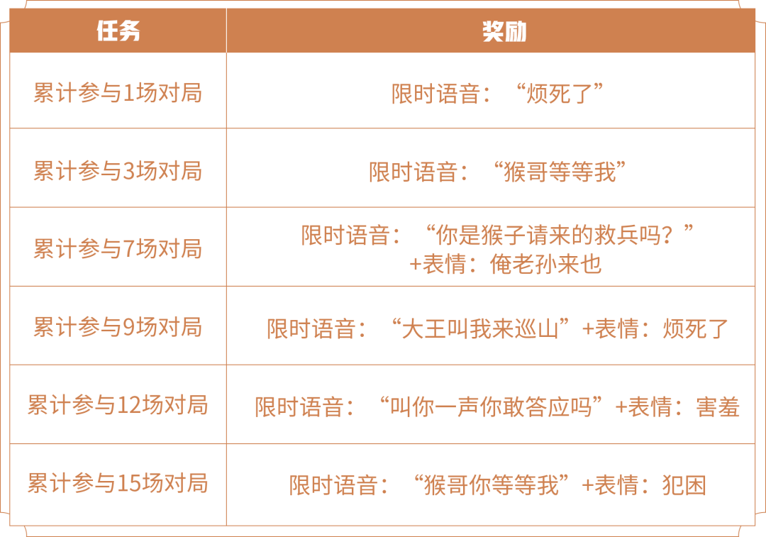活动期间参与对局,即可随机获得西游系列限时语音和西游系列限时表情!
