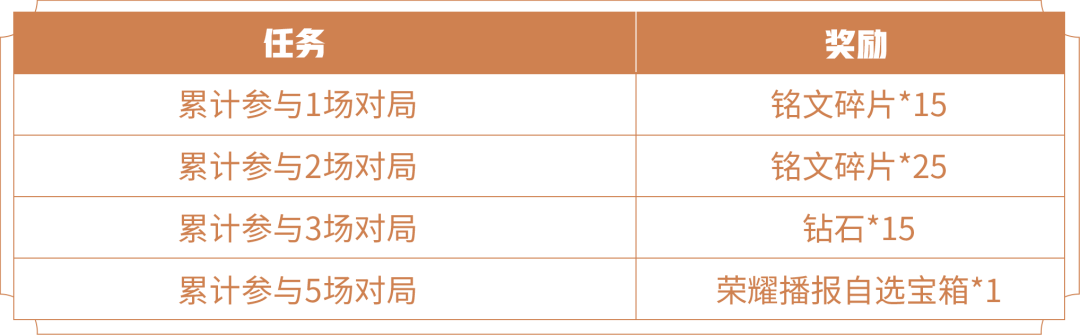 觉醒之战宝箱:打开后可获得以下奖励之一,铭文碎片*10、浓情玫瑰*1、亲密玫瑰*1、英雄碎片*1、1日英雄体验卡(嬴政、李元芳、花木兰、干将莫邪、马超、阿轲、太乙真人)、永久英雄/皮肤(嬴政、嬴政-摇滚巨星、李元芳、李元芳-逐浪之夏)