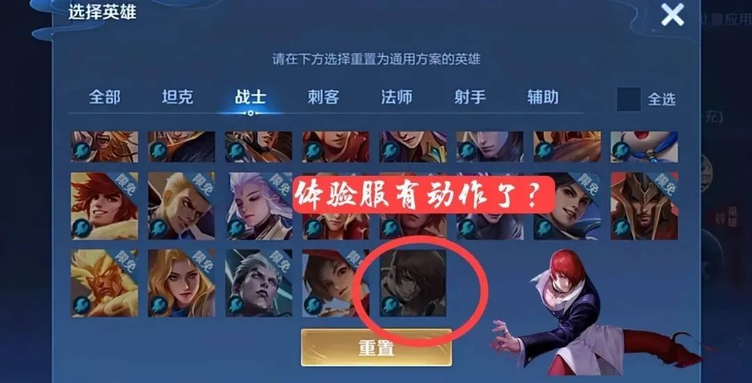 在早期的王者荣耀体验服中,就爆料过八神庵的踪影,英雄形象设计以及技能特点都公布过,但是后来一直没有上线,最近王者荣耀新版本更新之后,在王者荣耀体验服中又出现了八神庵的踪影,原来是我们在体验服的英雄操作设置中,只需要选择单个英雄操作设置,就会看到一些新英雄,其中就有三个没有头像的新英雄,还有一位新英雄就是八神庵,因为通过头像就已经能够判断了,八神庵疑似被重启。