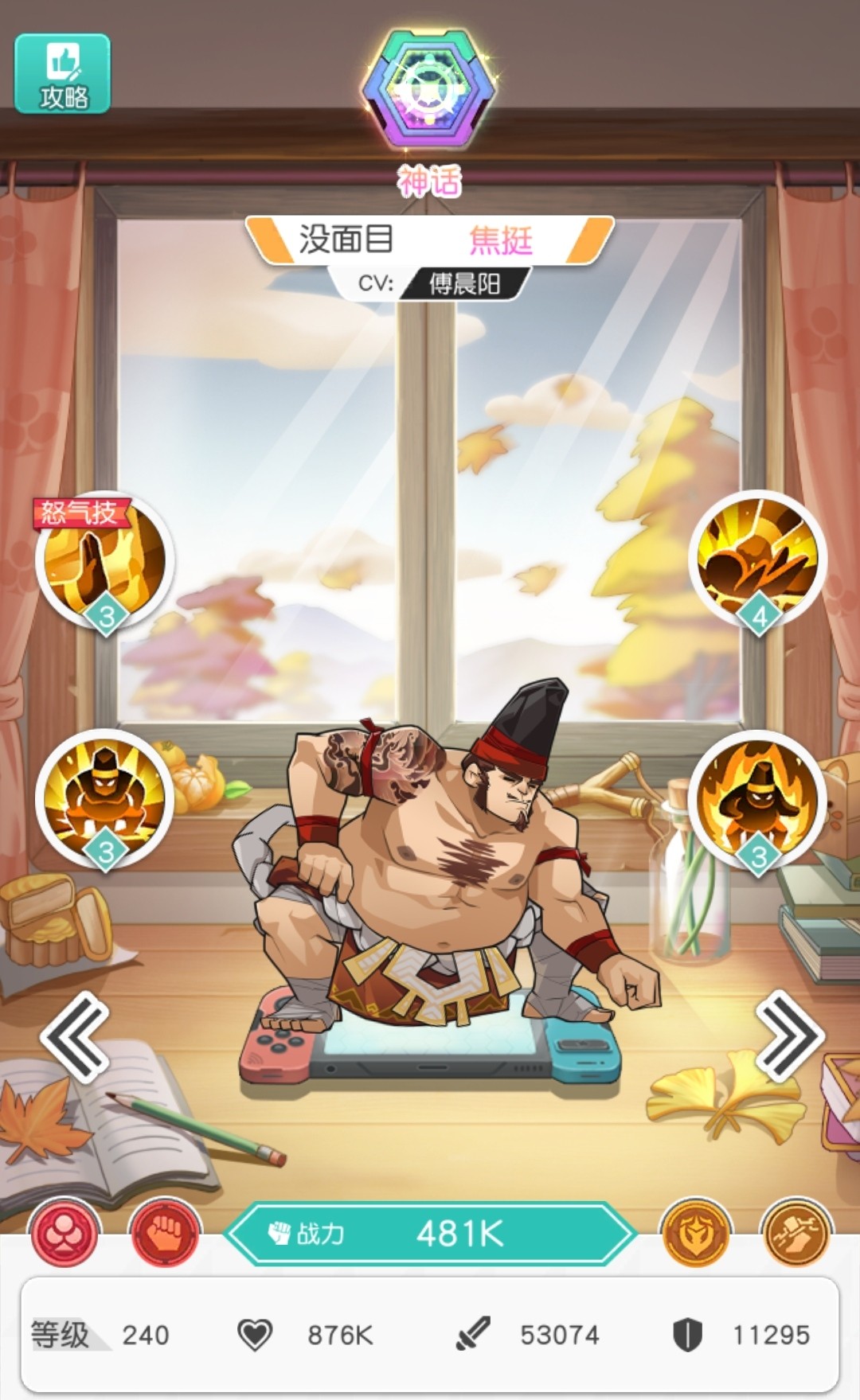 1. 看到图片后笔者的立即想到了街霸里的相扑,初始面板血量非常高,除了史进就是焦挺,我们再来看看技能: