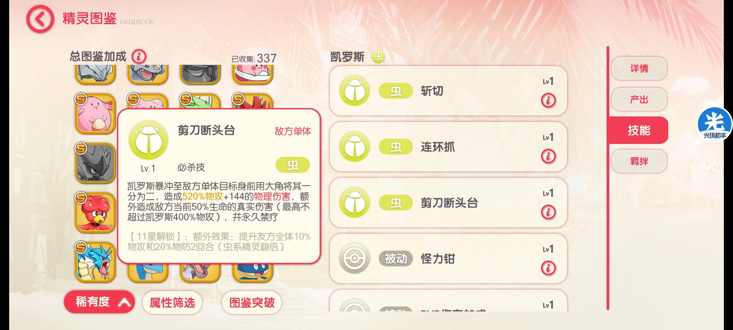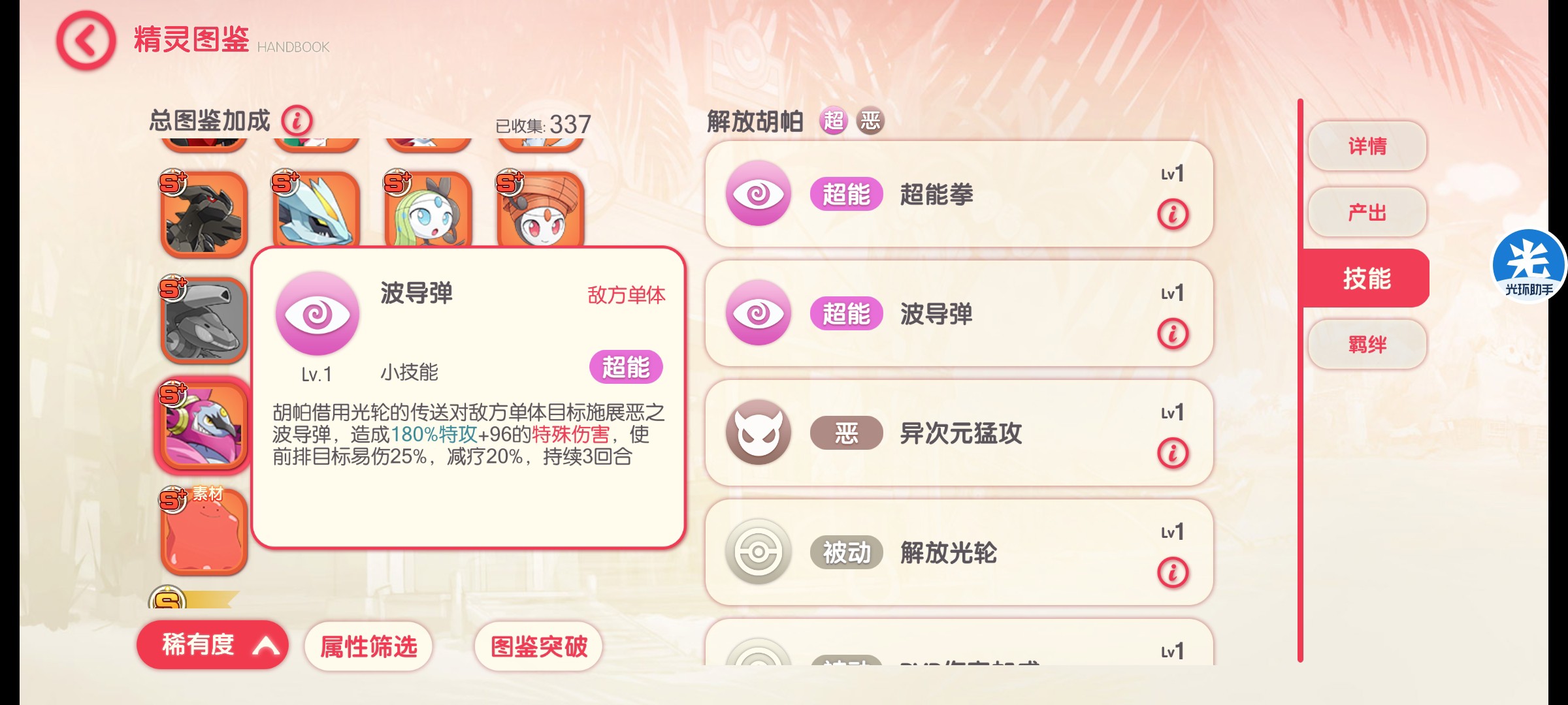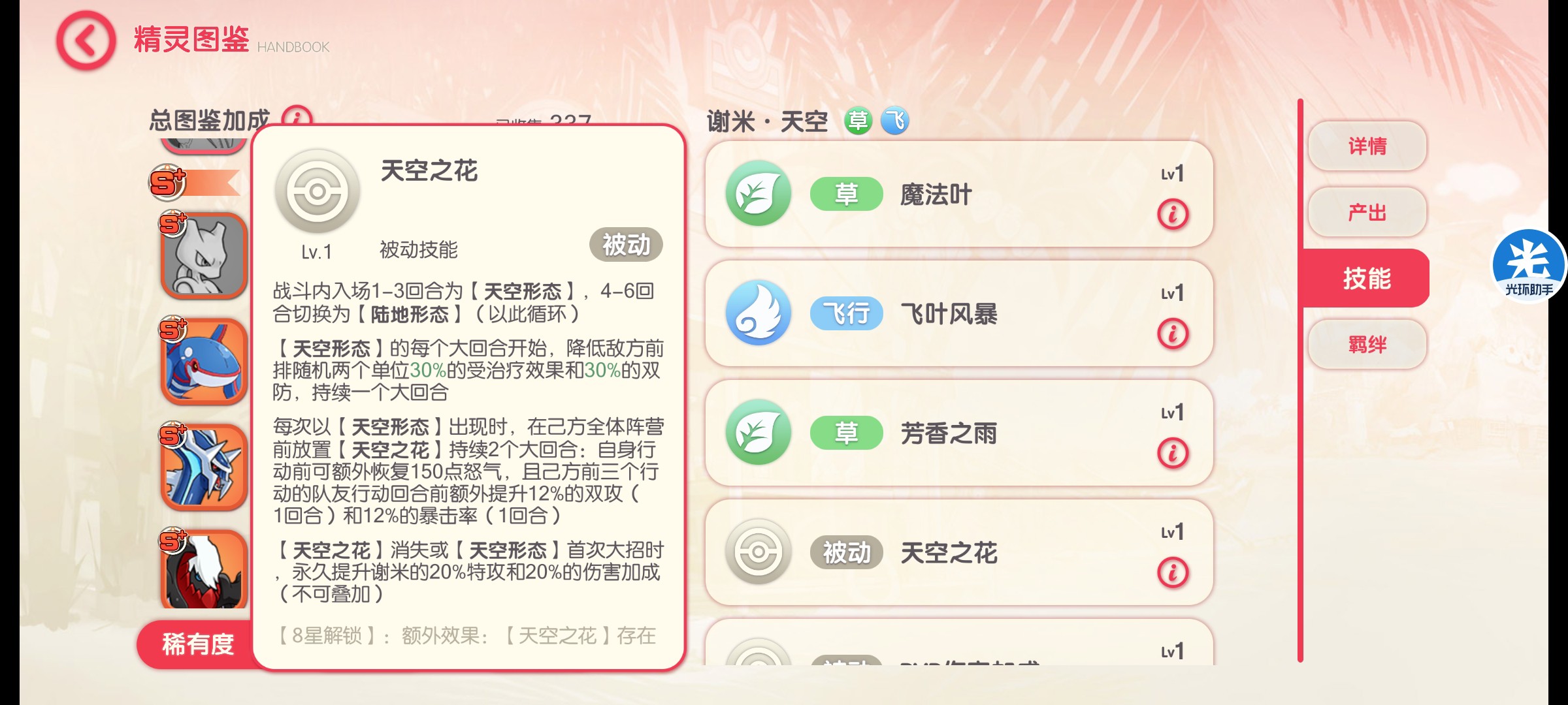 被动天空形态开始的时候会对敌方前排两个目标施加降疗,而且这个是可以随等级的提升而提升,由于y的存在,谢米通常都是使用天空形态,配合时拉比有不错的效果
