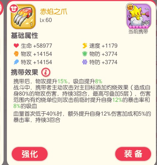这个携带的优势就是攻击加成害不错,而且战力特别高。不过现在的输出精灵都需要速度或者是解控,这个携带感觉还是凉的。