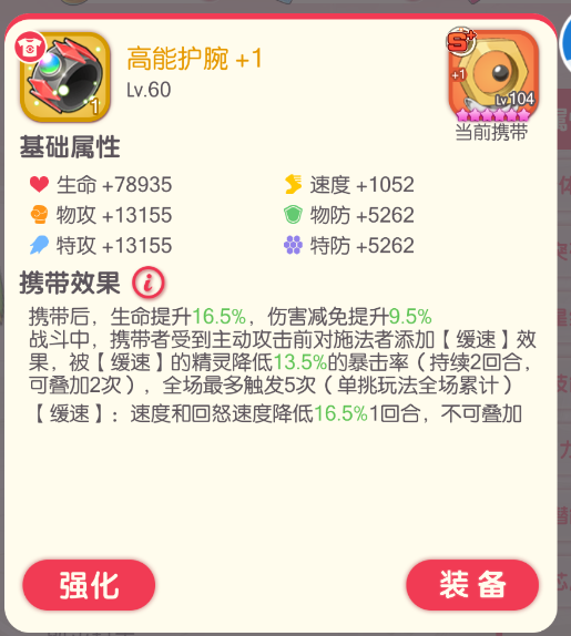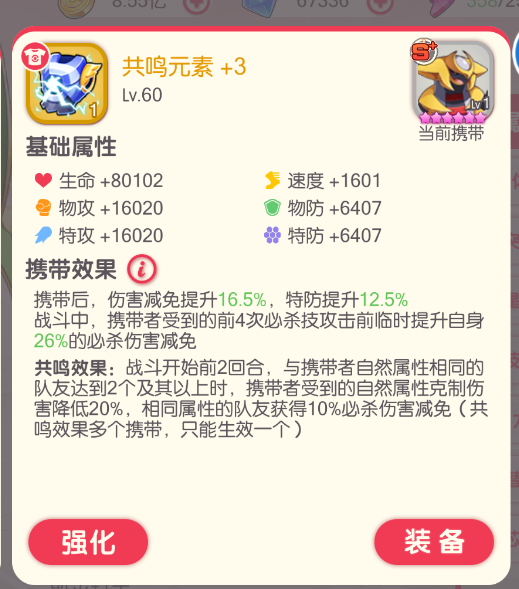 可能是大鱼的携带,不太记得。这个携带的效果也是改了不少,之前是需要打在前排防御最高的精灵身上才有给对手降暴击、降回怒的效果,现在简化了触发效果,增加了降速的效果。