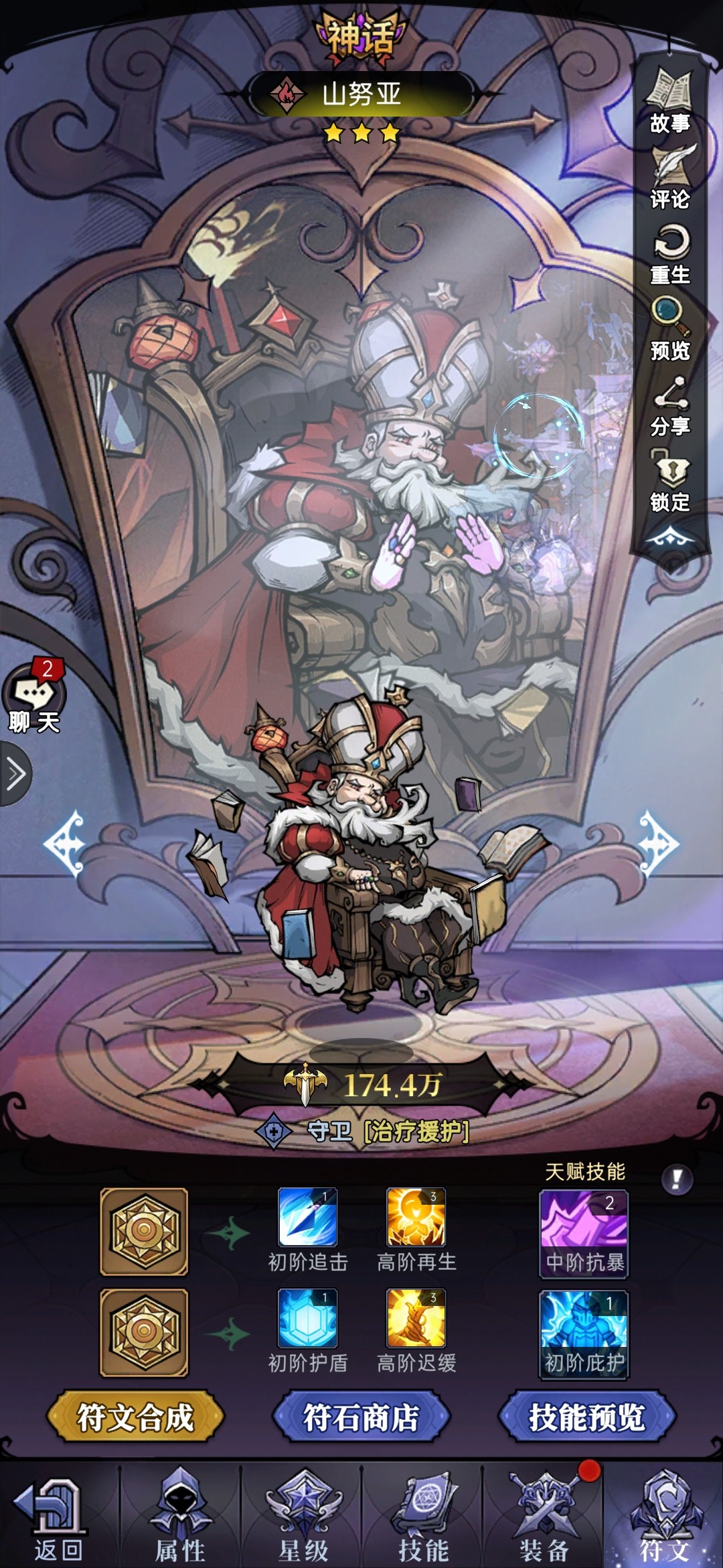 符文方面,首先最最基础的两个符文就是抗爆庇护闪避,5个人都要带,其次,佩罗红心需要穿透跟物连。佩罗需要带神赦,红心也可以带,没有的话也无所谓。老头带再生跟闪避(我目前没洗出来闪避),总之除了佩罗跟红心需要两个输出符文以外,其它角色都怼肉就好了。
