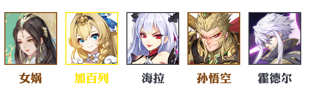 女娲-加百列-海拉-孙悟空-霍德尔女娲先手叠buff,这边有个小知识,很多人再问女娲和拉斐尔谁更好,之前我女娲的攻略里面也详细讲过,如果你的女娲达不到35魂器状态,其实是拉斐尔更好,35魂器的拉斐尔不是胜在魂器,而是胜在1回合的全体净化效果。对于菜刀阵容来说,拉斐尔的1回合解控还是非常重要的。