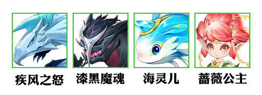 出手顺序依次往右:①疾风之怒-漆黑魔魂-海灵儿-蔷薇公主