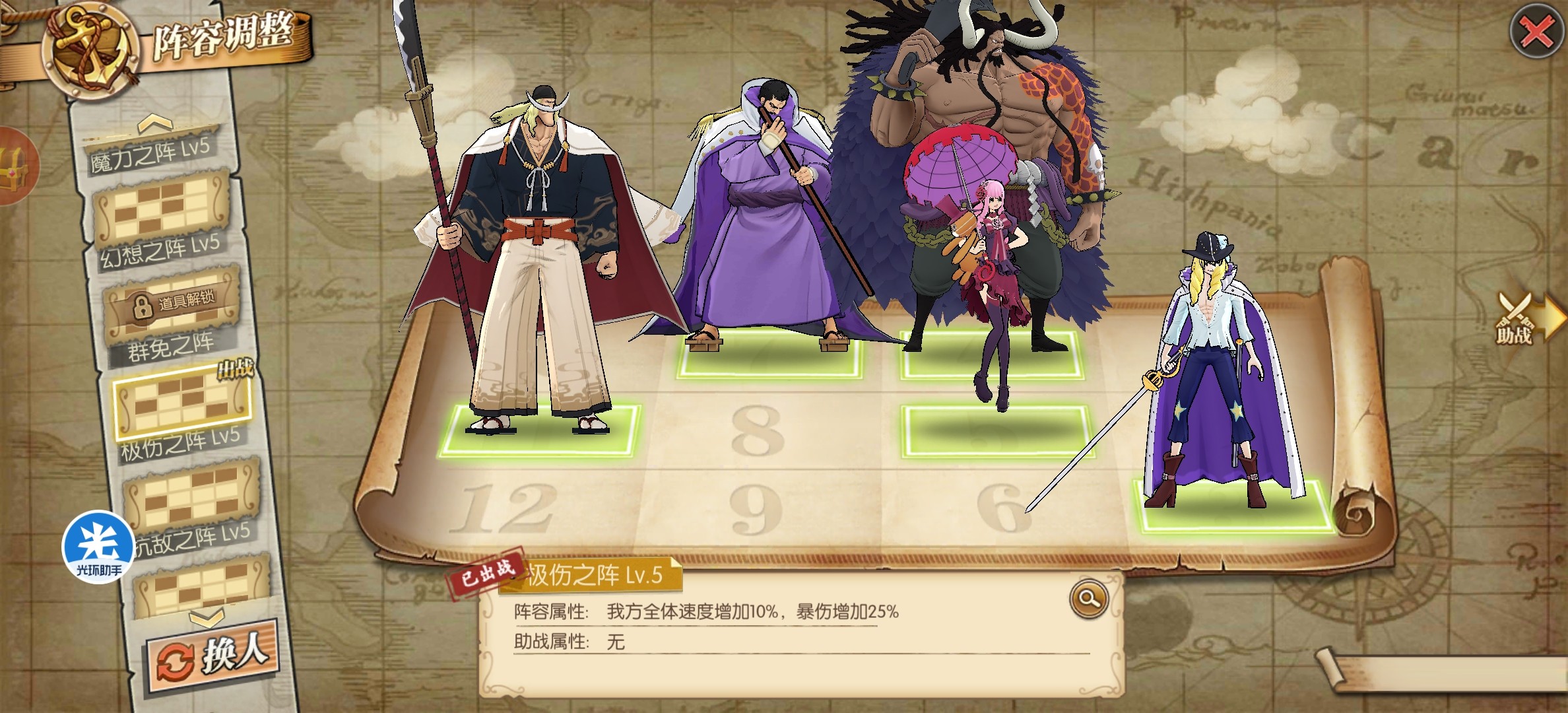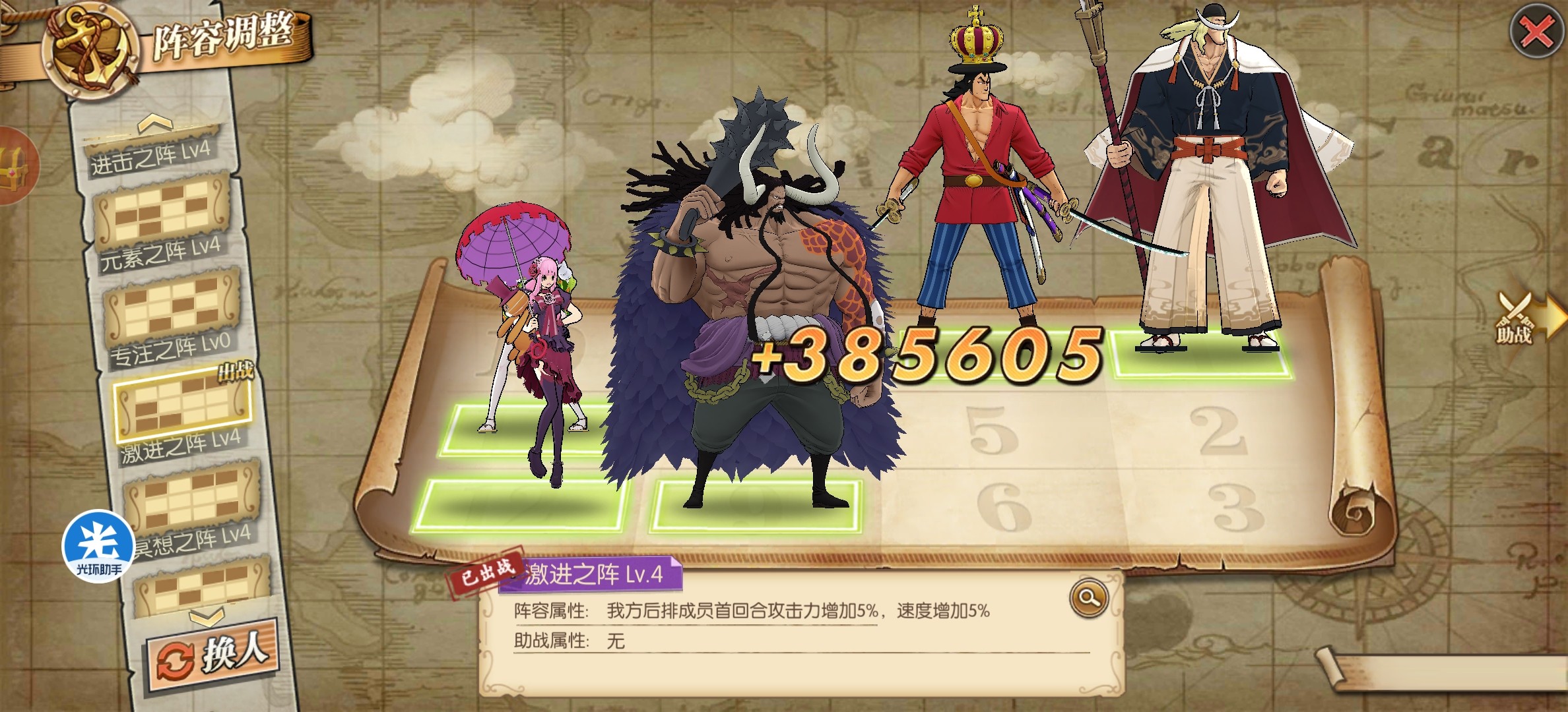 平民阵容搭配:激进阵:所有人都可以在天梯买到,阵容精髓主要是凯多保护佩罗娜,首回合后排还可以加速,因为平民的佩罗娜随时速度都会被超越,所以必须凯多保护,白胡子前排保护玉田这样一个阵容就达成了双保护的一个机制了,同时凯多在后排不怕直接被白胡子带走,这样完美能够扛到后面的回合,是非常好的。