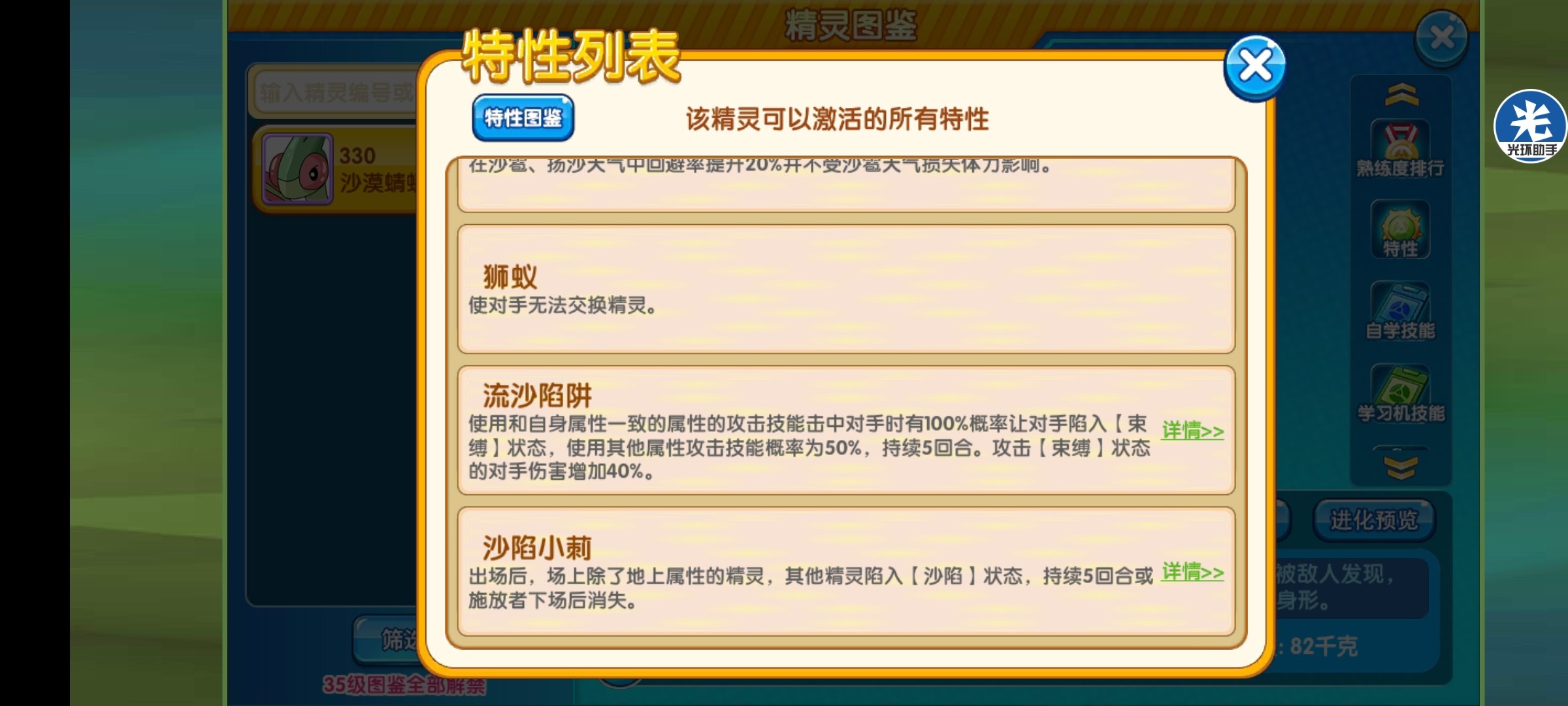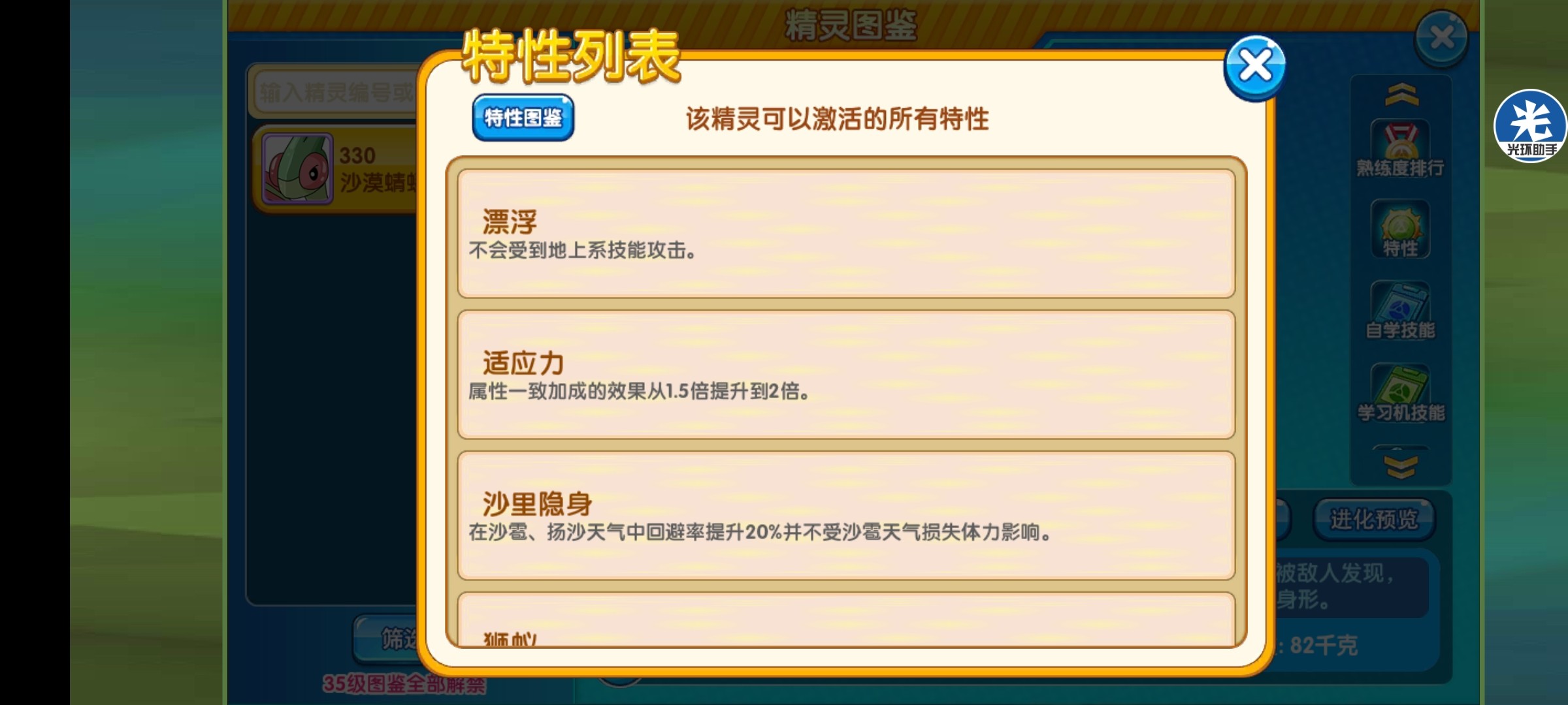 4、本特性的精灵不会陷入[沙陷] ;