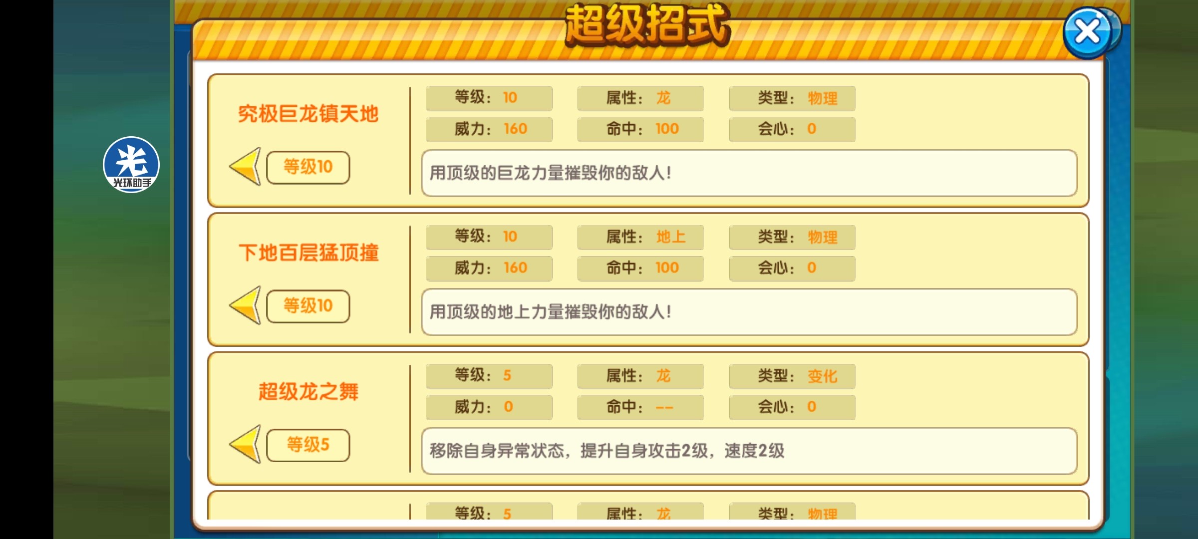 6、要和自己当前的属性一致的技能, 例如自己当前是龙+地上属性,使用龙+地上技能才有100%束缚概率