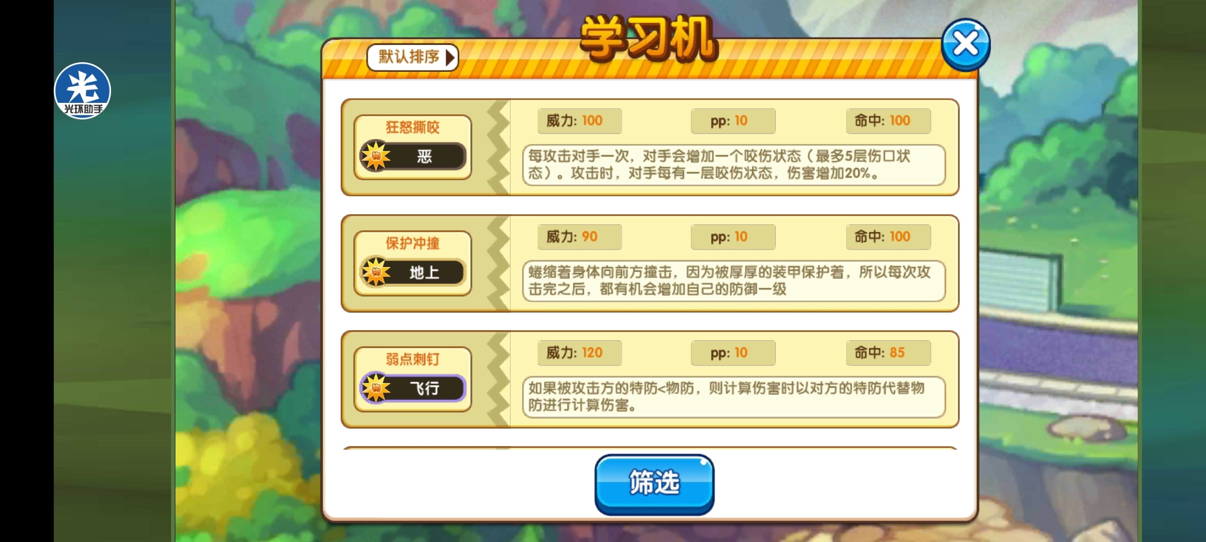 携带道具:可以选择大剩饭/魔术胶,当然也有附着针、反甲之类的道具。普通形态也可以选择天罗地网道具。