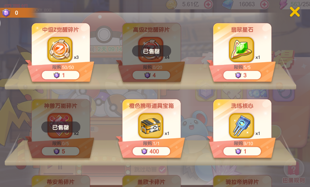 其他神兽碎片:限购20次=100分=10500钻石=1只老神兽。这个兑换需要已经解锁该精灵才可以兑换。如果是做Z觉醒或者是SS的话,这个价格还是相当不错的。